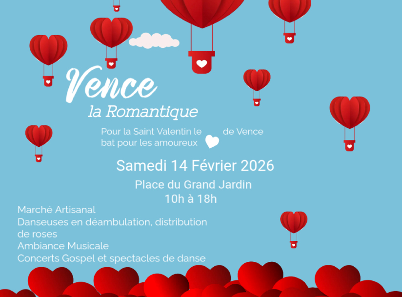 Le samedi 14 février 2026, Vence vous invite à vivre une journée placée sous le signe de l’amour, de la création et de la convivialité avec « Vence la Romantique », un événement incontournable de l’hiver vençois.